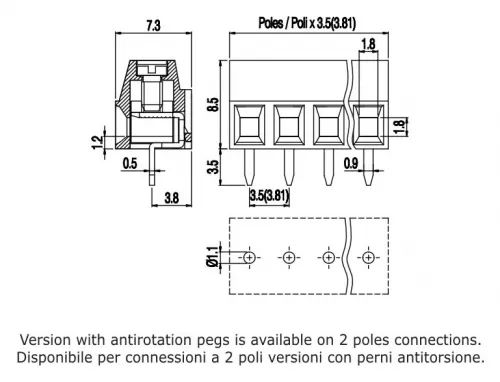 - Μέγεθος ανοίγματος κλέμας: 1.8 x 1.8mm
